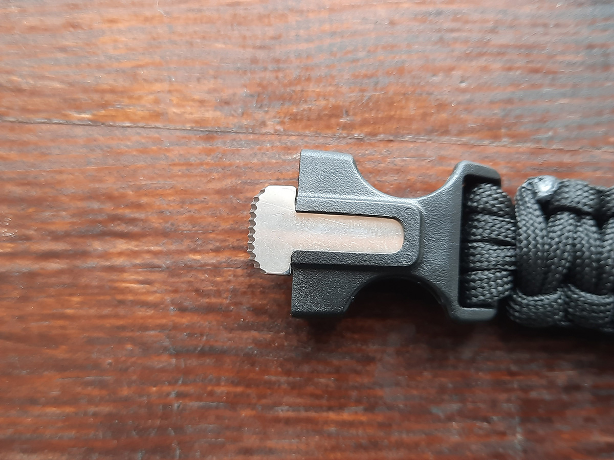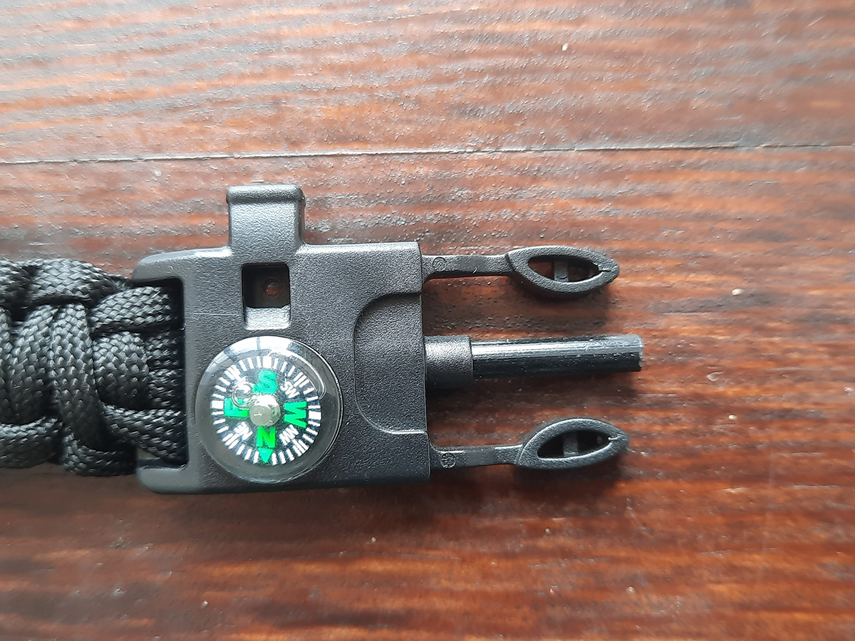 5) Lighter - This bracelet has a flint bar with a blade to create sparks and make a fire.